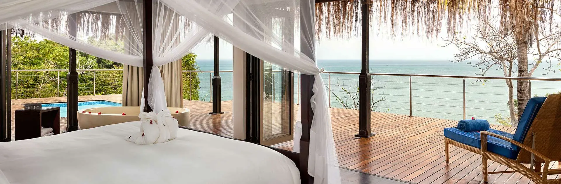 The Sea View Pool Villa is ideal for romantics, with a queen-sized bed, en suite bathroom, lounge area, and private veranda from which to enjoy the views. A private plunge pool is the ideal place where couples can cool off.