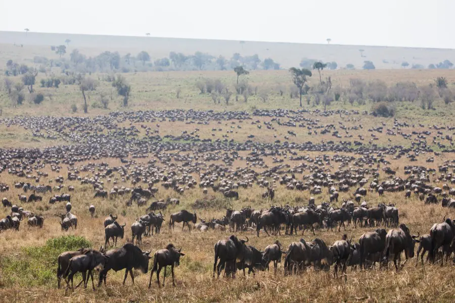 Book your stay between July and September to witness the epic spectacle of millions of wildebeest and zebras performing the annual Great Migration, moving southward from the Masai Mara to the Serengeti. In addition to safari staples, you can also book a hot-air balloon safari for aerial views of the reserve—ideal for seeing the magnitude of the herds moving across the lush grasslands.