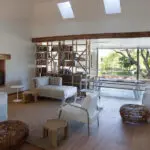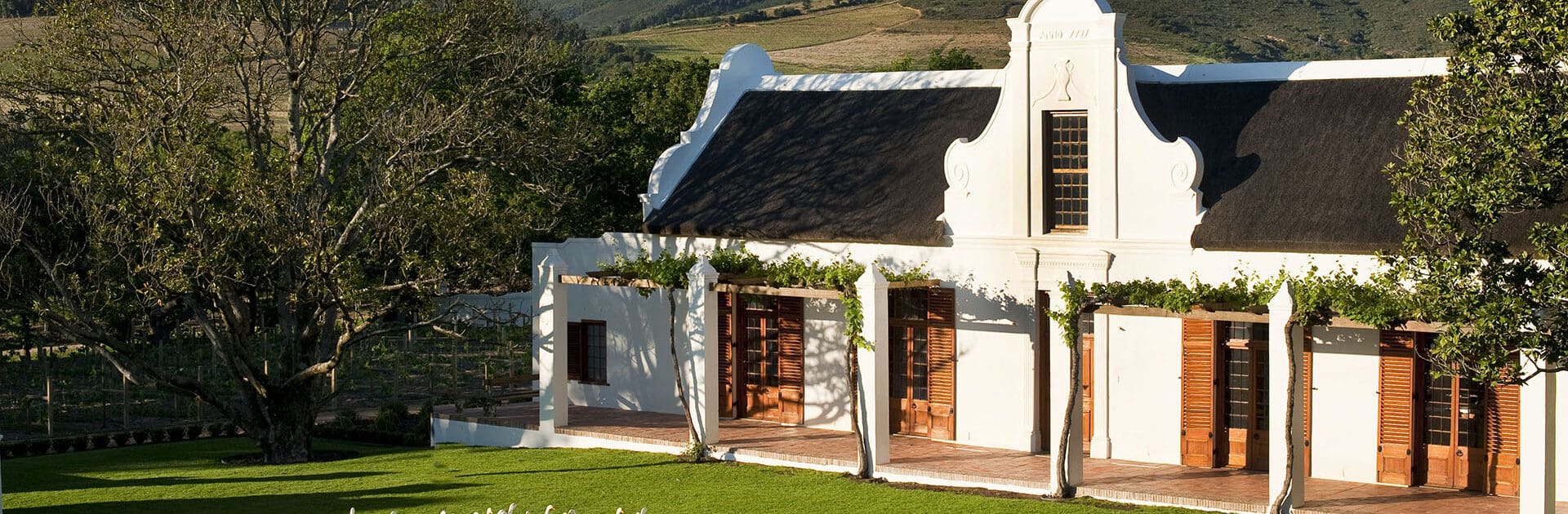 The exteriors of the suites are white-washed and built in the traditional Cape Dutch style, with gables and thatched roofs while the interiors are clean, contemporary, and spacious. In the summer months, the predominantly white decor and furnishings allow for a cool atmosphere, while during winter, the rooms are heated by the open hearths.