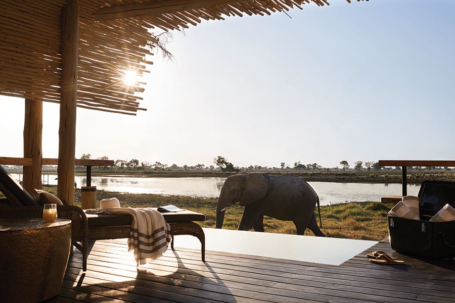 The 12 deluxe tented rooms have over-sized beds with views of the wetlands, private plunge pools, reading nooks, and both indoor and outdoor showers. The communal areas include the romantic Fish Eagle Bar, another ‘artisan-style’ bar and a traditional pizza oven that delivers up arguably the best pizzas in the Delta.