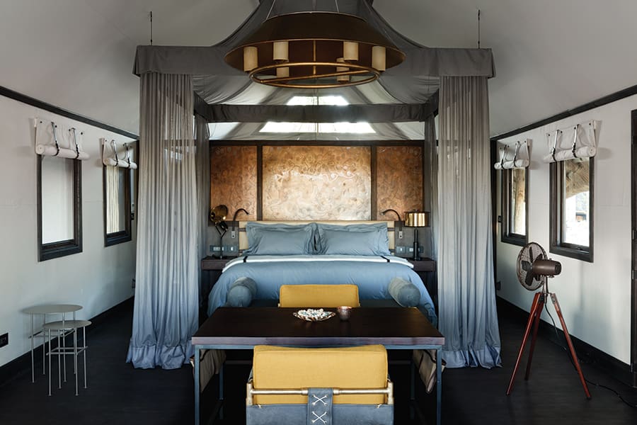 A highlight of this camp is its Fish Eagle Bar. Voted by The New York Times as one of the most romantic bars in the world, the bar is located on its own private island away from the main camp. The communal areas also contain a fire pit, an ‘artisan-style bar’ and a pizza oven that is linked to the stylish dining room.