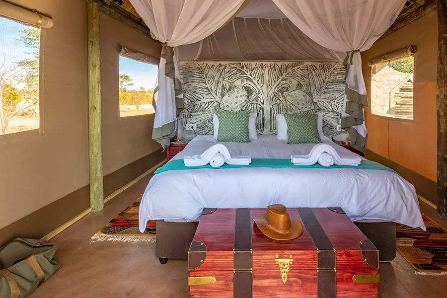 Set in the northwest of Zimbabwe's popular Hwange National Park, Deka Camp offers eco-luxury at its finest. The camp prides itself on its eco-conscious philosophy, relying on solar energy, water-heating panels, Bio Plants and forgoing energy-heavy appliances. And with no permanent fixtures, the campsite can be completely rehabilitated in 18 months.