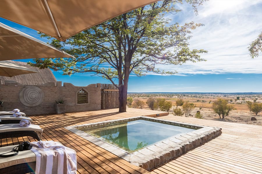 Game drives are a thrilling but tiring experience. Unwind after a day of spotting wildlife with a dip in the plunge pool or connect with loved ones back home in the dedicated Wi-Fi zone. Swap stories of the day's adventure on the large tented deck area of the main building before grabbing chilled drink at the bar and gathering around the fire pit to enjoy a cosy night of stargazing.