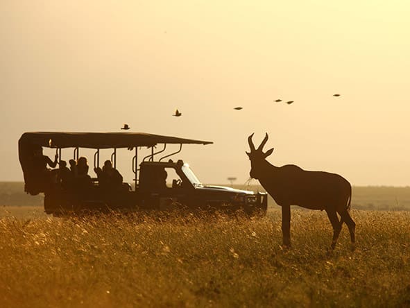 Set out on game drives in open-sided vehicles, as well guided bush walks, to see herds of plains game, big cats, elephants, and plentiful bird species.