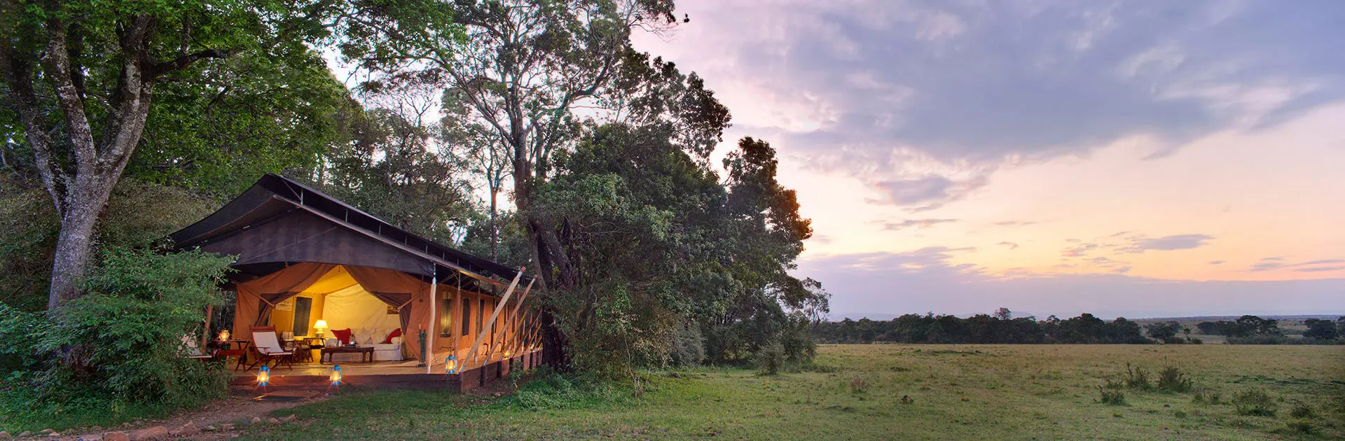 Elephant Pepper Camp is a traditional bush safari camp shaded by a natural forest of ebony and elephant pepper trees, overlooking the Mara plains. Set away from other lodges, the camp offers modern comforts, evenings by the campfire, and dinner under the stars.