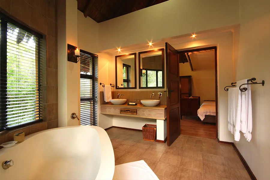The Standard Suites have air-conditioning and two twin beds that could be made up as a king-sized bed. The bathroom is en suite with a large bath and outdoor shower. There is also a covered patio for you to relax on after your game drive.