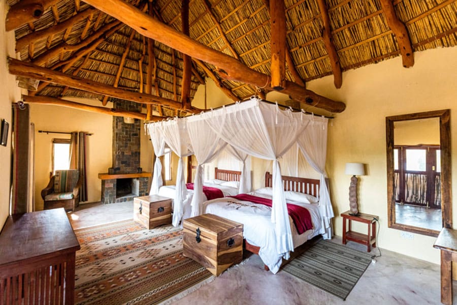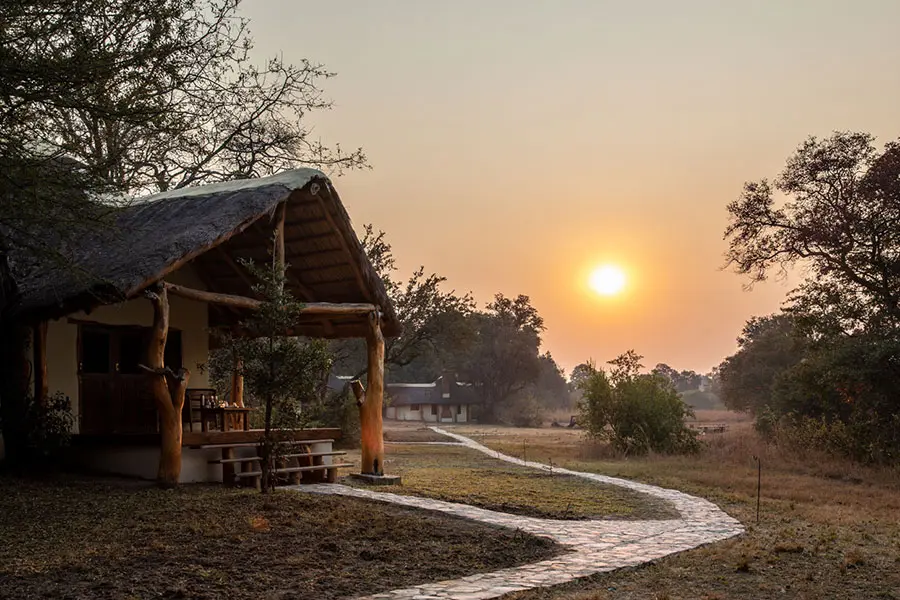 Each spacious tented chalet offers private decking overlooking the Kafue River, two queen size beds, a fireplace an indoor bathroom with freestanding bath and an outdoor shower. The lodge is run on solar power and each chalet has plugs for charging equipment.