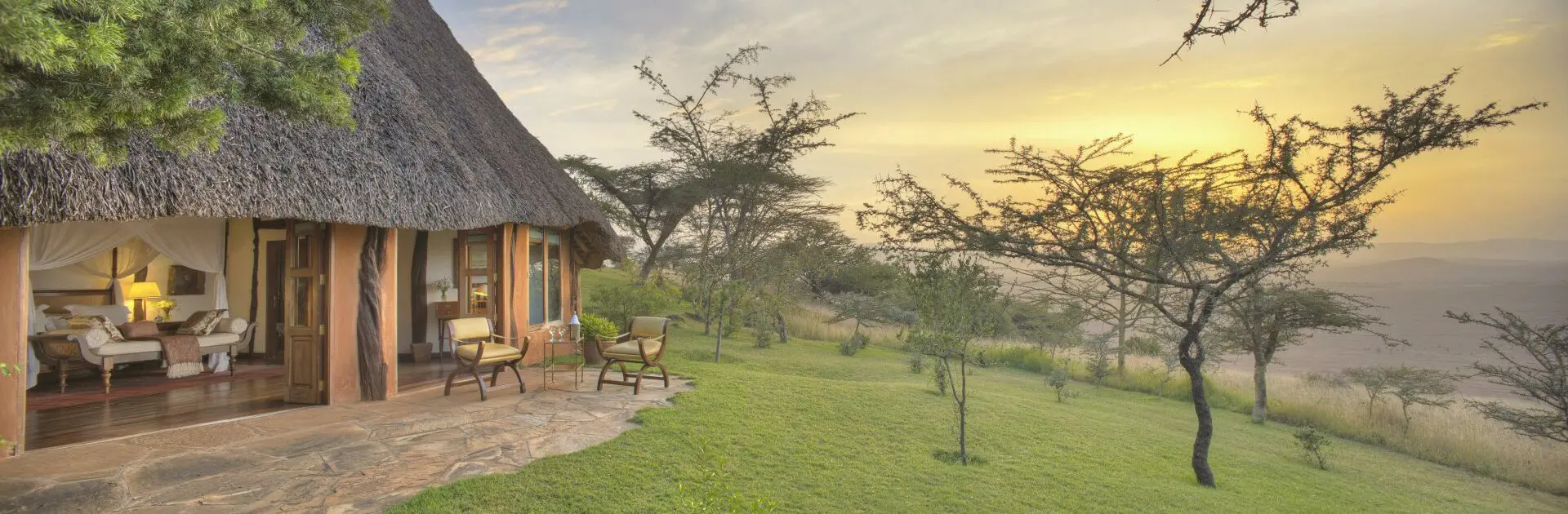 Beautiful thatched cottages overlook the plains of the Lewa Conservancy - a reserve that spearheads conservation in Kenya.
