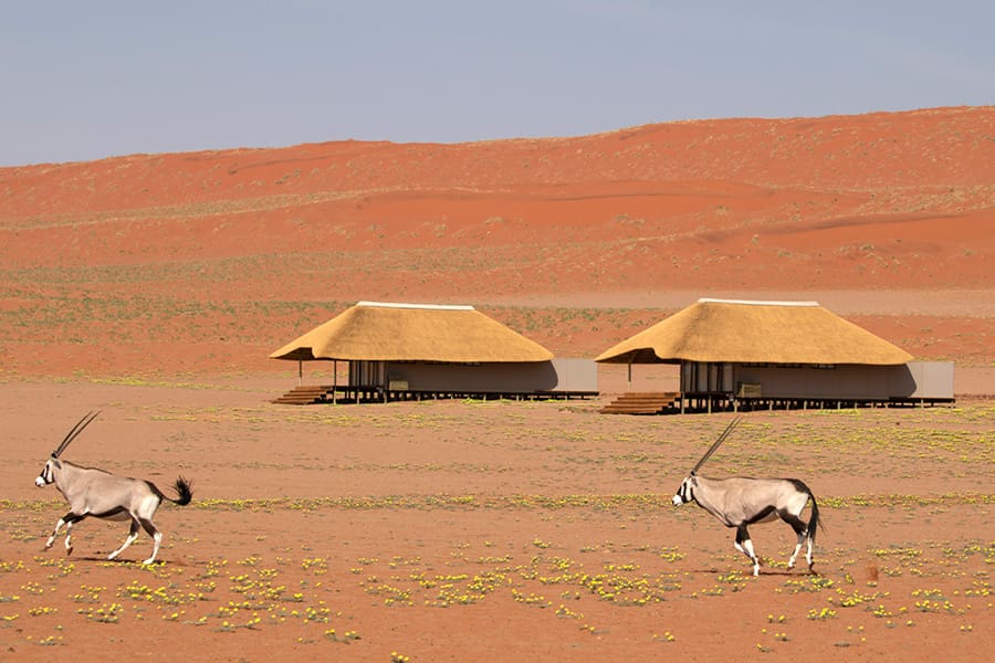 Located deep within NamibRand, Kwessi Dunes places its focus not on chasing after big game, but appreciating the unconventional beauty that the sprawling desert plains, jagged mountains and iconic red dunes have to offer. The harsh climate here has produced some interesting wildlife. Spot unusual creatures like the bat-eared fox as well as antelope, African wild cats and even the odd leopard and cheetah, all of which have adapted to survive in these unforgiving conditions.