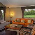 Perfect for friends or family travelling together, this room type has two spacious bedrooms on either side of a comfortable shared lounge in which you can enjoy sundowners or morning coffee together. Each bedroom is similar to the standard tent with two queen-size beds and an en-suite bathroom.