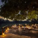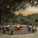 Lion Sands Tinga Lodge is a safari lodge overlooking the Sabie River in the Kruger National Park, and is built around a 200-year-old jackalberry tree. The old world luxury lodge offers a comfortable bygone-style retreat and a welcoming family-friendly atmosphere.