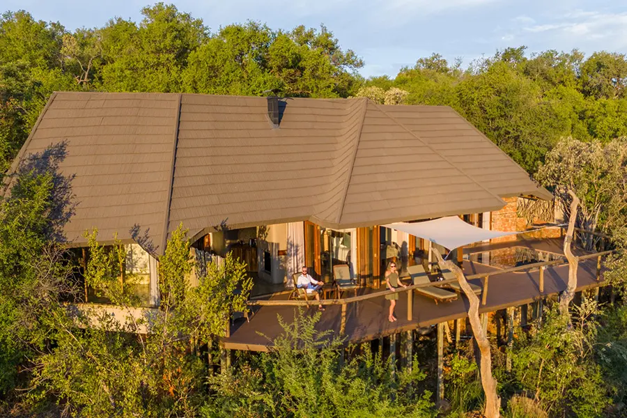 The exquisitely designed Madikwe Hills Private Game Lodge provides a luxury safari experience in South Africa’s malaria-free Madikwe Game Reserve. Situated under a grove of tamboti and marula trees on the edge of the Marico River, the lodge makes the most of its position and offers spectacular views from the main building and each private suite.