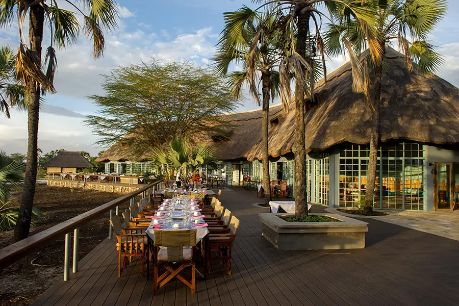 Relax under thatch in the comfortable open sided sitting areas, designed to catch the breeze as you gaze out over the savannah.