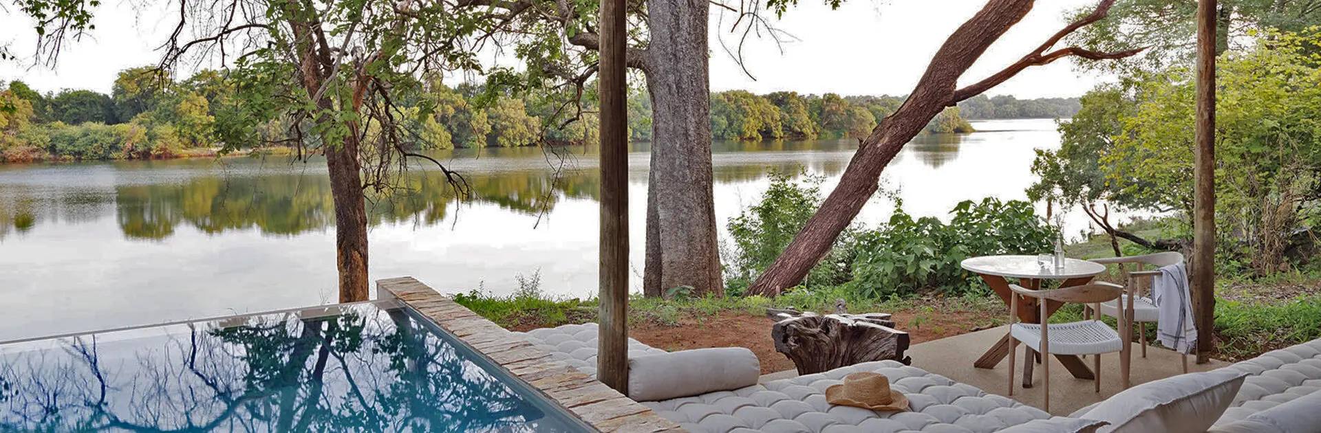 Tucked under a canopy of riverine forest along a private stretch of the Zambezi, the River Suites at Matetsi offer tranquil seclusion and generous space. Each elegant suite is air-conditioned and features a king-sized four-poster bed, an indulgent bathroom with indoor and outdoor rain showers, and a deep soaking tub. Outside, a private plunge pool and deck invite you to soak up uninterrupted views of the river and passing wildlife.