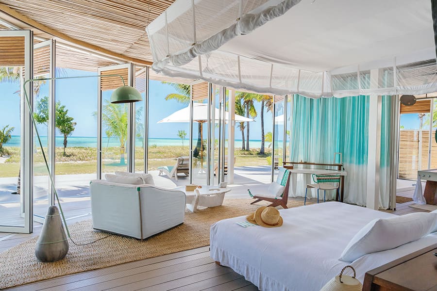 Miavana's main beach village or ‘piazza' features a sparkling infinity pool and rooftop bar, boasting one of the most breath-taking views in the world. The lodge's on-site museum or Cabinet de Curiosites features a collection of treasures like dinosaur bones and an elephant bird egg. Elephant birds were enormous flightless birds that lived on Madagascar and became extinct about a thousand years ago.