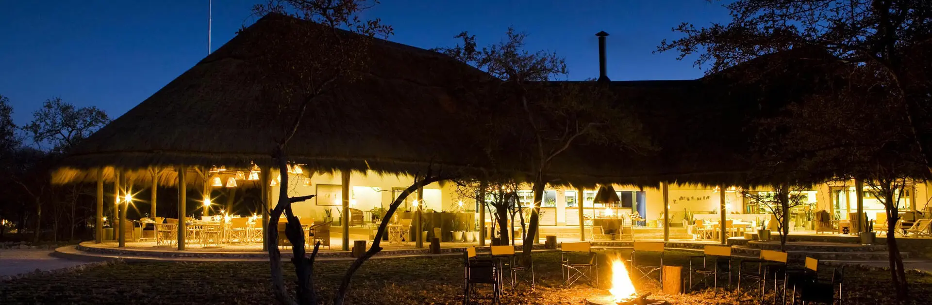 A breakfast buffet, lunch and set dinner menu are served under thatch on the main veranda with views of your natural surroundings. Special buffet dinners are often served under the stars in the open-air boma.