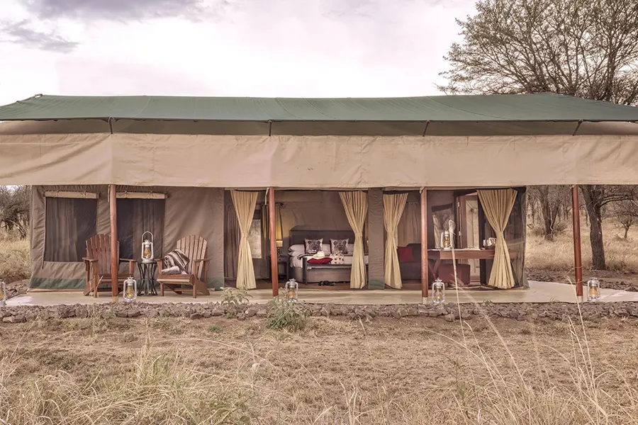 Nimali Central Serengeti’s eight luxury tents transports guests back to the golden age of safari with its Meru-style canvas tents, stone and wood fixtures and finishes, and endless views of the Serengeti plains dotted with acacia trees. You’ll even have your own writing desk to record your discoveries and adventures.