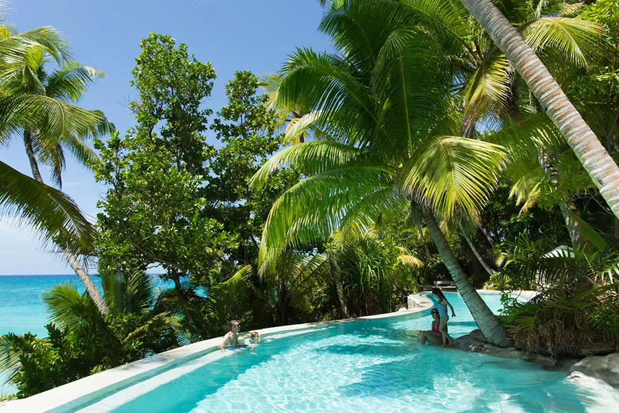 A sunset bar is tucked away on the western beach of the island. The main swimming pool surrounded by leafy tropical vegetation and the world-class dive centre are close by, while North Island's gym and spa are perched on one of the most peaceful corners of the island with spectacular views. Indulge in a tailor-made holistic treatment while gazing out over the Indian Ocean to the horizon.