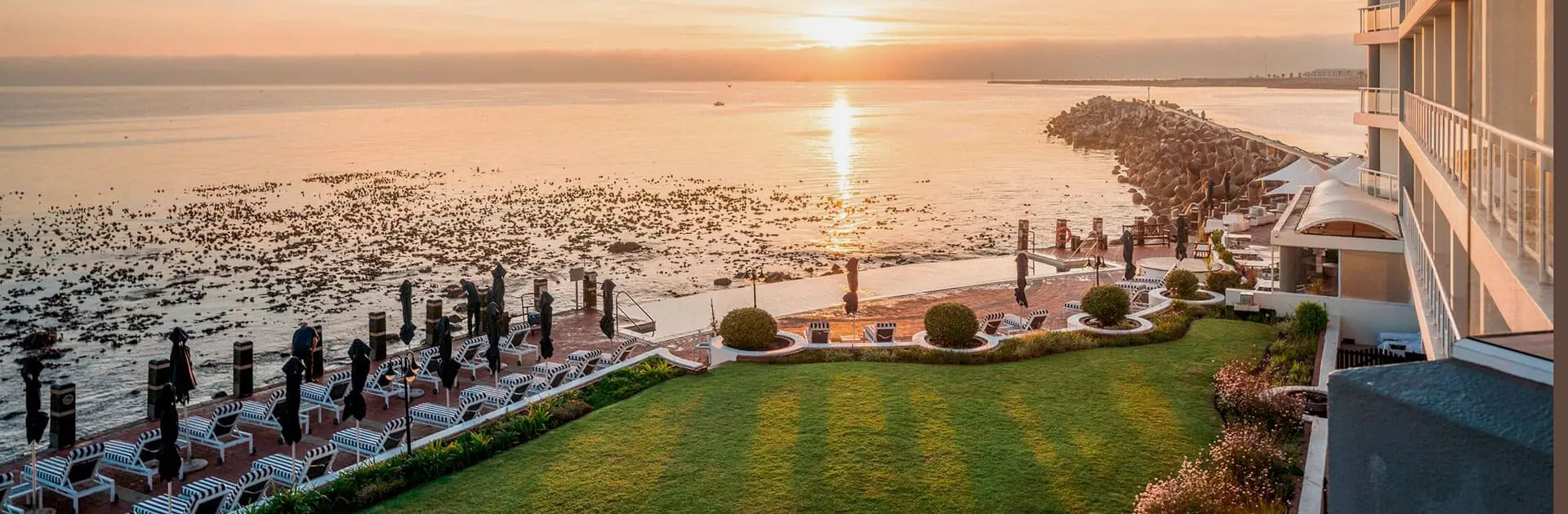 The expansive terrace overlooking the Atlantic Ocean is ideal for reclining around the rim-flow swimming pool – have a quiet drink or dine alfresco while enjoying the view.