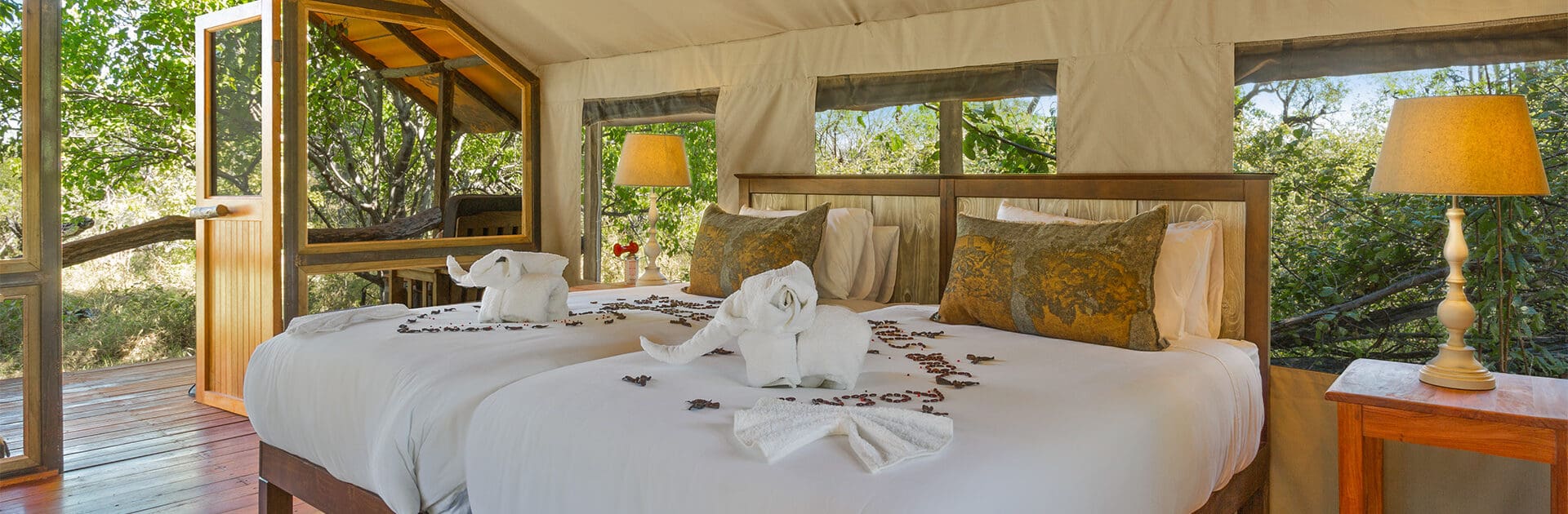 Overlooking the glistening Sable River and offering a range of activities, from game drives and mokoro rides to local village visits, this comfortable bush camp is an ideal spot from which to explore the Okavango Delta!