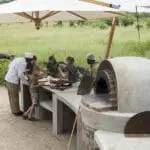 The décor is charming – traditional safari styling with an emphasis on comfort and fine finishes. The highlight of the spacious tents is undoubtedly the copper-encased bathtub in the centre of the en suite bathroom as well as the outdoor shower.