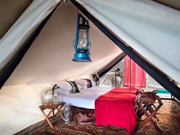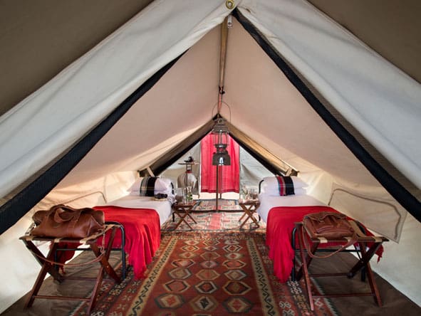 Tents offer all of the creature comforts, yet remain simple as the amenities are designed for minimal environmental impact. The canvas abodes are charmingly appointed with twin campaign beds, luggage racks and trunks. The open-air bathrooms feature hot-water bucket showers and eco-friendly flush toilets.