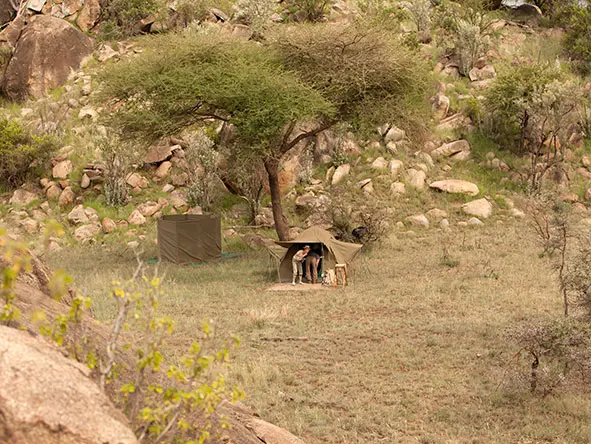 Wayo Walking Camp sits in a protected wilderness area within the northern Serengeti National Park. With its simple 2-person dome tents lying under thorn trees, the camp is a basic one with all the necessary creature comforts like soft mattresses, comfortable chairs and hot-water showers. And thanks to its lightweight and eco-friendly nature the camp can be set up anywhere, following the rhythms of the wildlife and putting you in prime position for fantastic animal sightings.