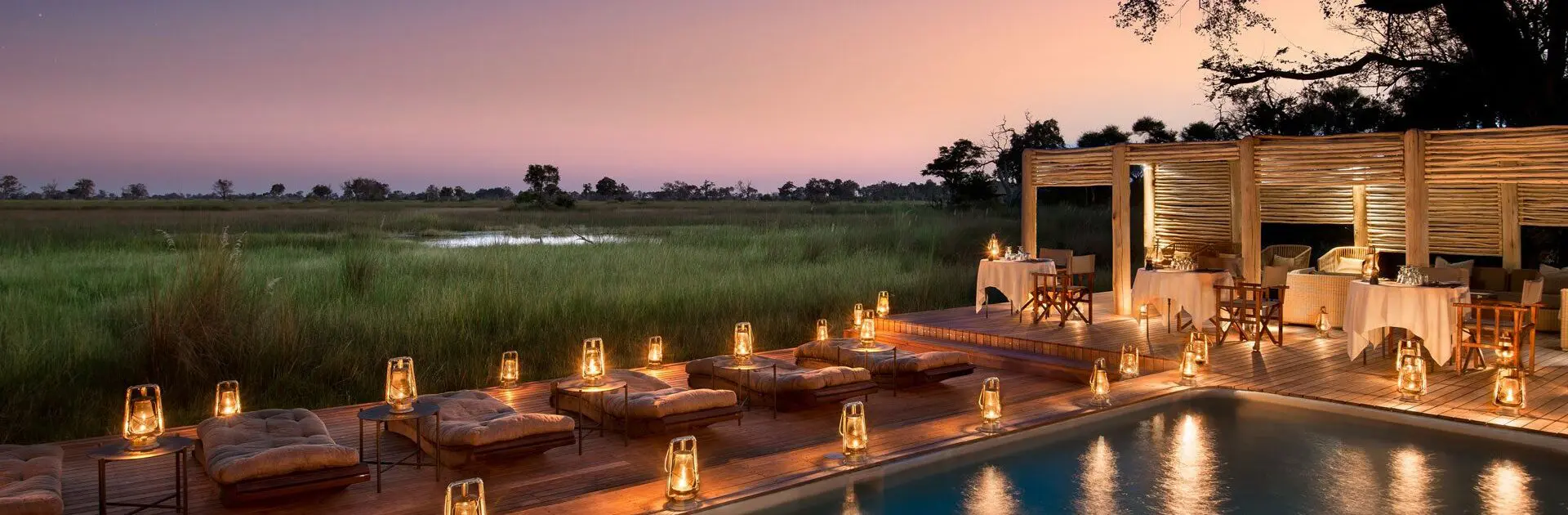 True to its name, King's Pool Camp exudes an air of grandeur with resplendent design and décor fit for royalty. Overlooking the glistening waters of King's Pool Lagoon in the game-rich Linyanti Wildlife Reserve, this 5-star camp offers an authentic African safari experience without foregoing modern-day luxury. Open, airy suites are tastefully decorated with local artwork, while thatch and wood are used to create an elegant design that subtly reminds guests that they are in the thick of nature.