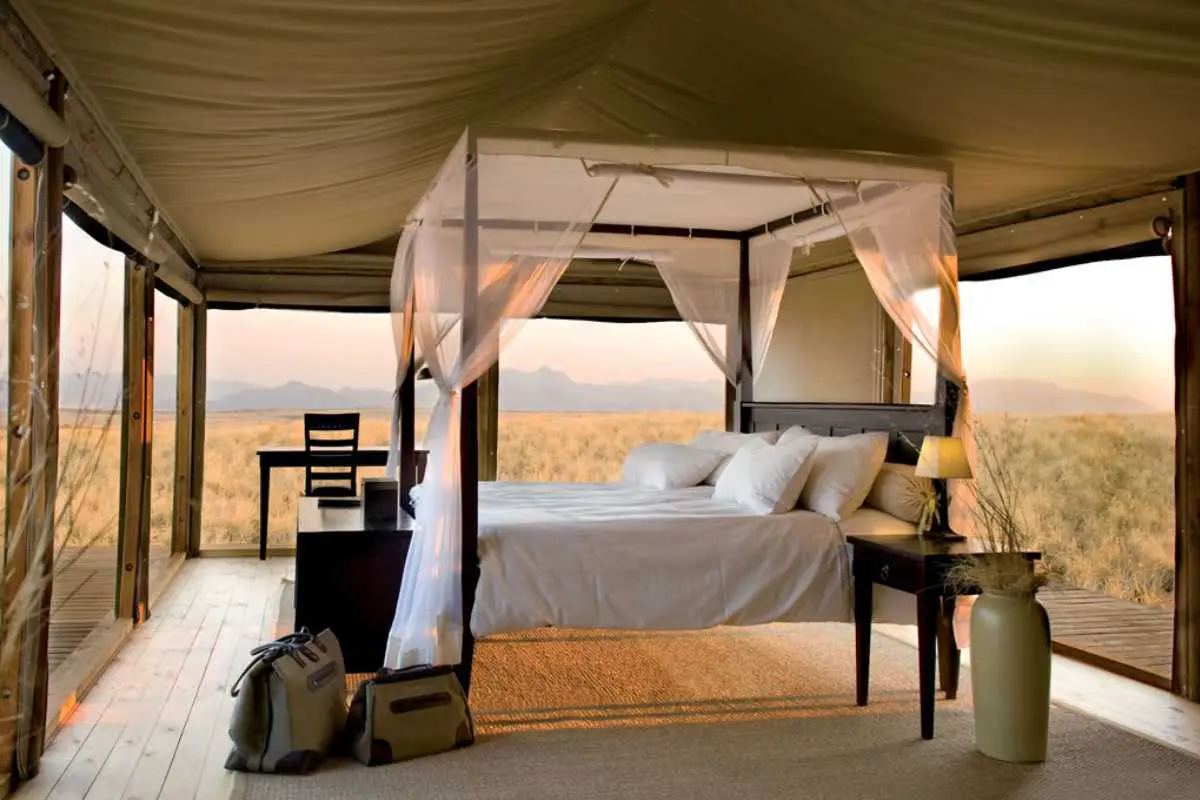 This luxury safari lodge is situated in the untouched NamibRand Nature Reserve, an International Dark Sky Reserve that's specifically protected for its exceptional quality of starry nights and nocturnal environment. Wolwedans Dunes Lodge sits perfectly on top of a dune plateau, providing 360-degree panoramic views of the surrounding desert landscape. Each spacious tented suite has a private veranda that connects you with the tranquil desert; sleeping with your canvas blinds open will reveal a limitless carpet of stars.