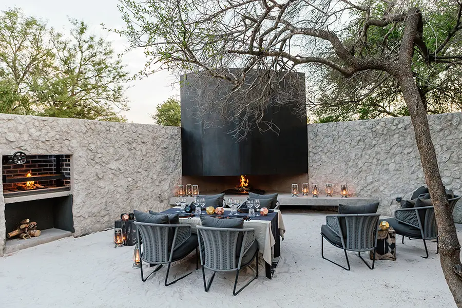 Termine sus días en un boma privado para disfrutar de una deliciosa cena junto al fuego, maridada con excelentes vinos de la bodega con temperatura controlada de su Bush House.