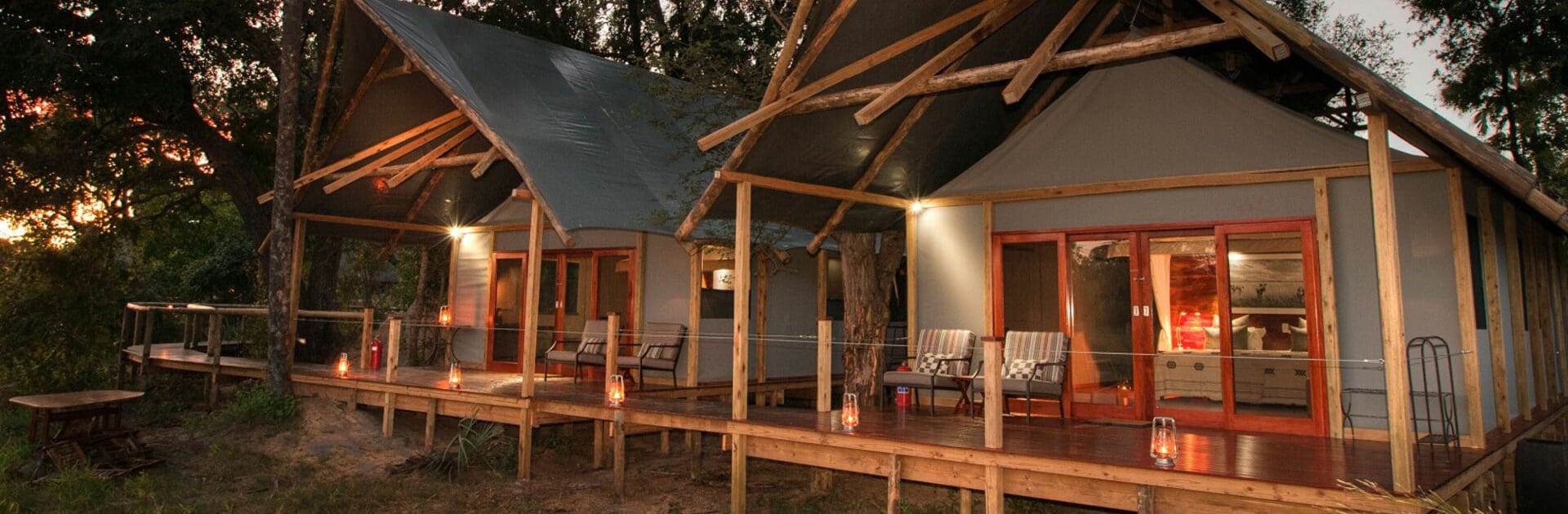 Chitabe Lediba cuenta con cinco lujosas tiendas de safari con suelos de madera, grandes puertas correderas de cristal y decoradas con un limpio estilo contemporáneo.