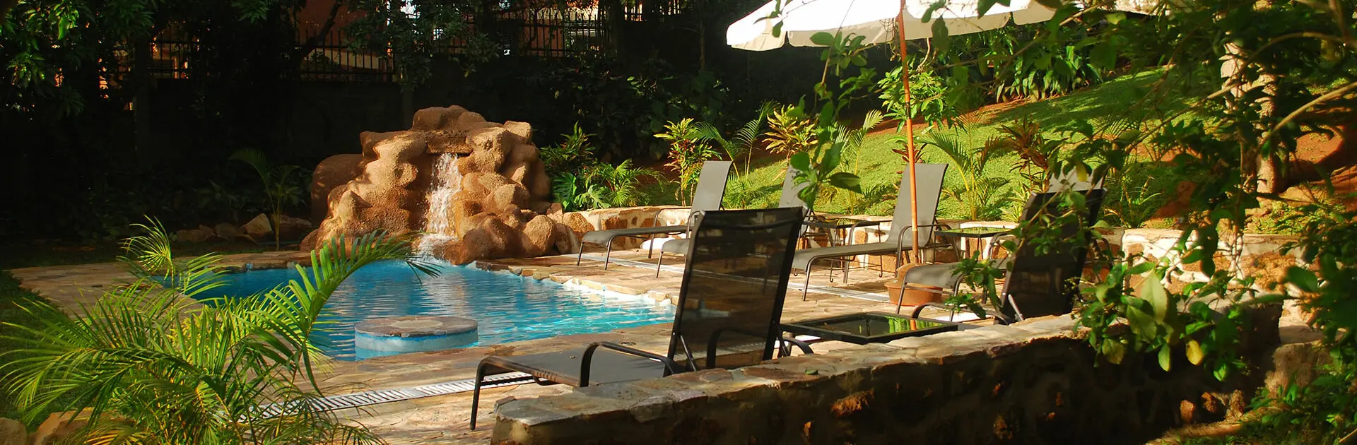 Este hotel boutique está enclavado en la exuberante ladera verde de Entebbe y fue en su día una residencia presidencial. Situado a sólo 10 minutos en coche del aeropuerto de Entebbe, Karibu, que significa "bienvenido" en swahili, es el refugio ideal antes o después de un cambio de vida. trekking con gorilas safari en Uganda.