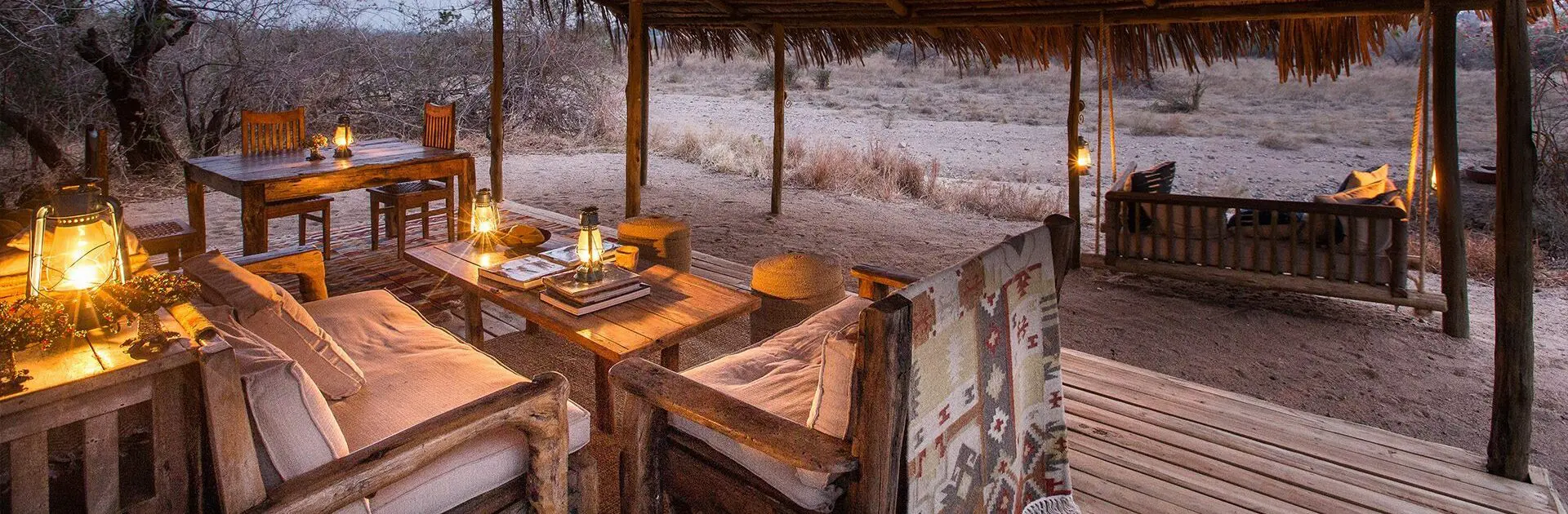 Disfrute de un cóctel al atardecer a orillas del río Ifuguru y de una cena bajo un inmenso pasillo de estrellas, junto a una hoguera crepitante, con los sonidos de la noche acompañándole hasta su tienda y arrullándole más tarde para que se duerma.