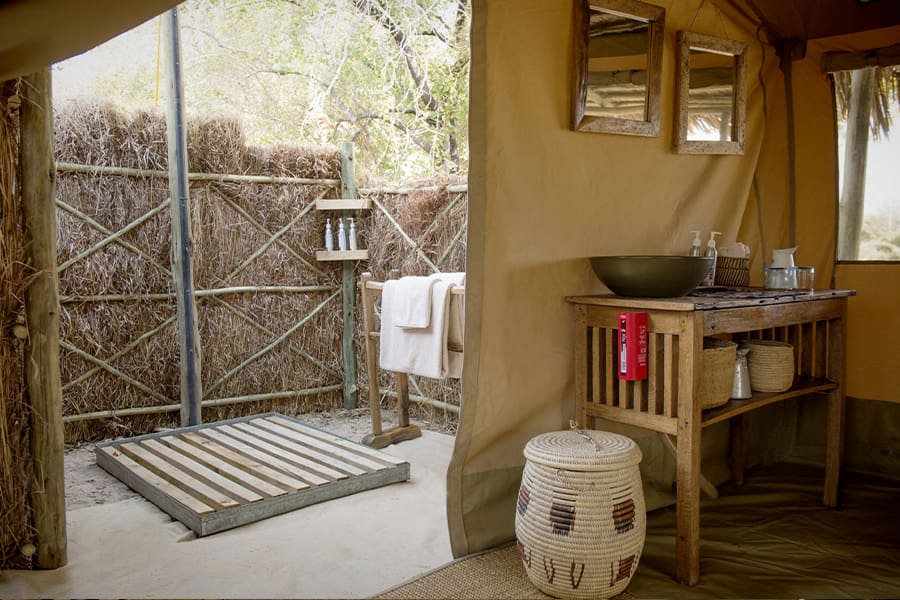 El Kigelia Camp cuenta con seis lujosas tiendas con acceso directo, todas ellas con baño privado, inodoros con cisterna y refrescantes duchas al aire libre. Relájese en la veranda frente a su tienda y disfrute de las vistas del río Ifuguru Sand. Todas las tiendas incluyen artículos de aseo, repelentes de insectos y baúles con cerradura.