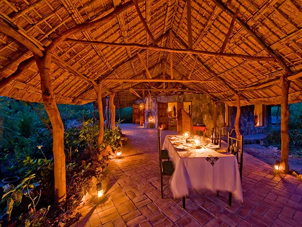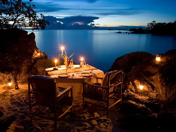 La cena es un festín movible y cada noche se cena en un lugar distinto. Los almuerzos pueden servirse en el comedor del lodge con vistas al lago, o recoger un delicioso almuerzo para llevar y hacer un picnic en una playa desierta o un bonito paraje. El Nkwichi Lodge posee uno de los "huertos" más impresionantes de África.