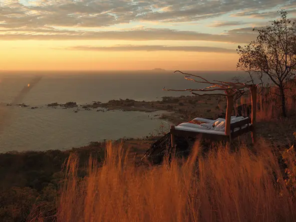 El Nkwichi Lodge está situado en una hermosa playa blanca de la sección mozambiqueña del lago Malaui (conocido en Mozambique como lago Niassa). No hay carreteras en un radio de 16 km del lodge, lo que contribuye a crear una sensación de lejanía y tranquilidad. Construido para integrarse en el paisaje circundante, el edificio de dos plantas ofrece amplias vistas del lago. Depende de usted lo mucho o poco que quiera hacer en un día: puede nadar, bucear, navegar, ir en canoa, explorar la reserva de caza de Manda y visitar las aldeas locales y los proyectos comunitarios.
