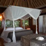 Diseñada para fundirse a la perfección con el bosque y la playa circundantes, la villa es una encantadora colección de madera flotante, esculturas de piedra, telas blancas y delicadas cortinas de conchas, todo ello en varios niveles y bajo altos techos de paja. Admire las ornamentadas tallas de madera tanzanas y, por la noche, déjese envolver por la ondulante muselina y la suave luz dorada de las velas.