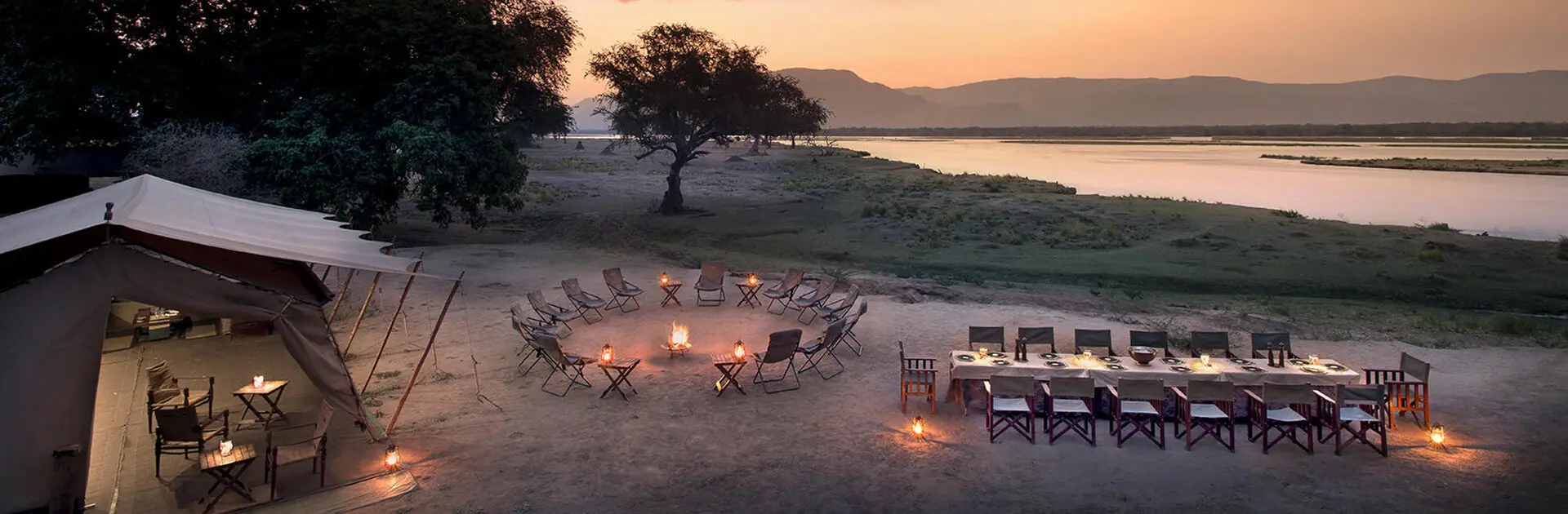 Un campamento móvil de tiendas a orillas del río Zambeze, la opción perfecta para el aventurero de safari que busca una experiencia auténtica.