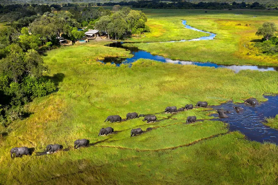 Situato al confine non recintato tra il Moremi e un'area comunitaria privata, vi permette di godere del meglio di entrambi i mondi: l'accesso al vasto Moremi durante i fotosafari diurni e l'opportunità di praticare altre attività nella riserva privata, come la guida in fuoristrada, l'inseguimento di specie elusive durante i fotosafari e l'esplorazione dei boschi di mopane, delle praterie e delle rive dei fiumi durante le escursioni naturalistiche guidate. I safari in mokoro sono disponibili quando il livello dell'acqua è alto e le visite al vicino villaggio permettono di entrare in contatto con la vita e la cultura locale.