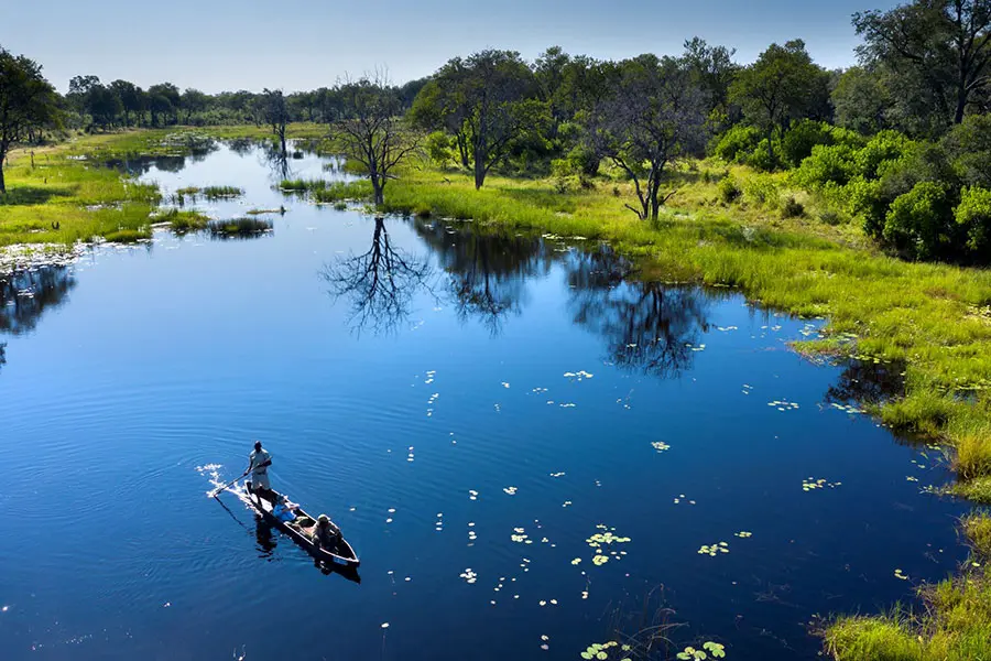 Dopo tre notti al Linyanti Ebony, vi sposterete nel paesaggio più noto del Botswana, il grande Delta dell'Okavango, all'interno della Moremi Game Reserve. Per raggiungere il Delta, un volo di linea in aereo leggero vi porterà da Linyanti al confine orientale di Moremi. Osservate come il paesaggio cambia dalla savana alle lussureggianti foreste e alle zone umide che circondano il Delta. Atterrando alla pista di atterraggio di Khwai, vi trasferirete al Khwai Leadwood, situato sulla laguna.