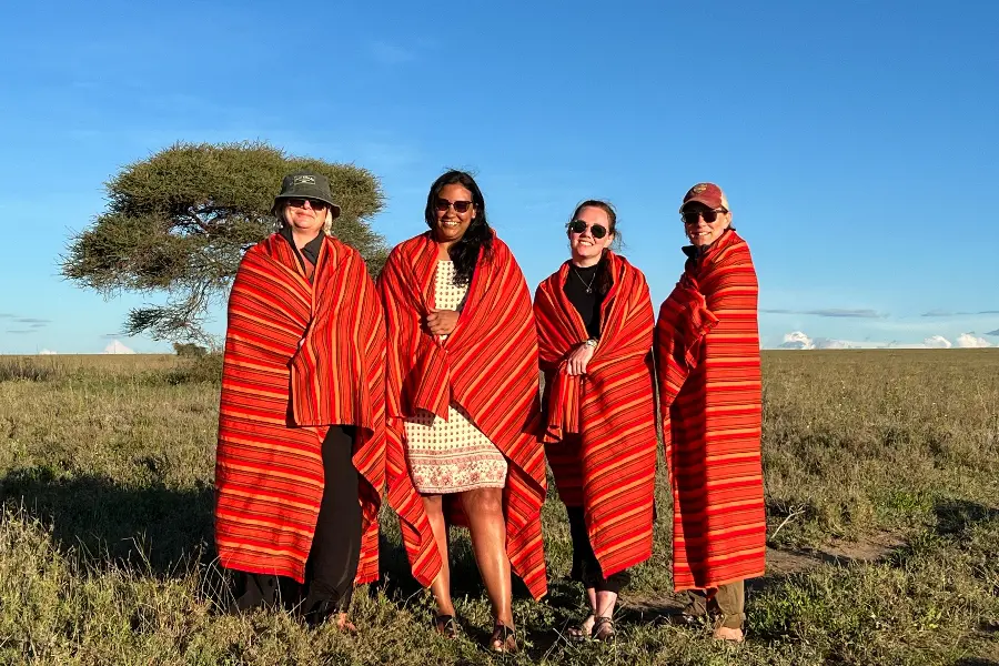 Viajo sempre com o meu lenço com estampado de zebra e o meu sarongue - cada um deles tem múltiplas funções que se revelam úteis quando se está num safari! Além disso, uma dica: no Governors' Il Moran Camp, em Masai Mara, no Quénia, peça a tenda 3, pois tem a melhor vista e uma rede com vista para o rio, para ver mais animais. Quando lá estive, vimos uma mãe hipopótamo e o seu bebé recém-nascido nas margens, com um crocodilo gigante à espera!