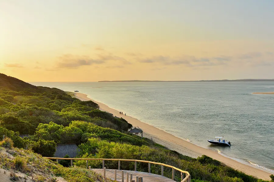 After an early morning game drive and a hearty breakfast at Lukimbi Lodge, you will be collected for your road transfer to Mozambique. The drive is approximately three hours and takes you to Maputo – the iconic and historical capital city of Mozambique. At the harbour, a private boat is ready to sail you across tranquil Maputo Bay towards the Machangulo Peninsula. Machangulo Nature Reserve is a pristine and untouched wilderness home to exquisite beaches, golden dunes and lush coastal woodlands. On the other side of the peninsula are calm estuaries, beautiful mangrove forests, flamingos and other wildlife.