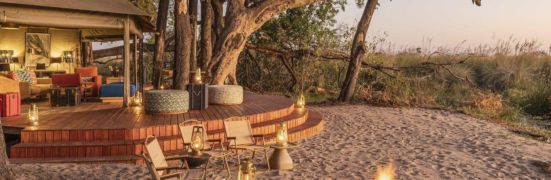 Leave Okuti behind and fly directly to Footsteps Across the Delta, situated within the incredible Okavango Delta, for a two-night stay. Footsteps is a secluded tented camp boasting beautiful views, amazing wildlife and an on-the-ground Delta experience.