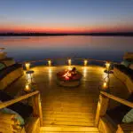 Set on a quiet stretch of the Lower Zambezi with view of the mountains from the deck